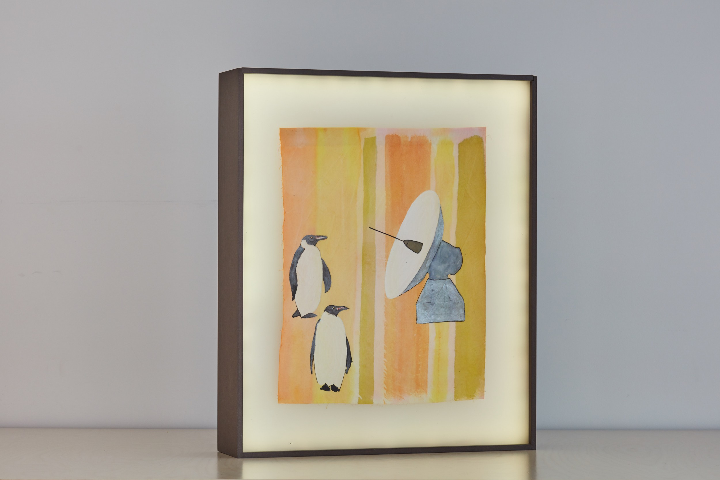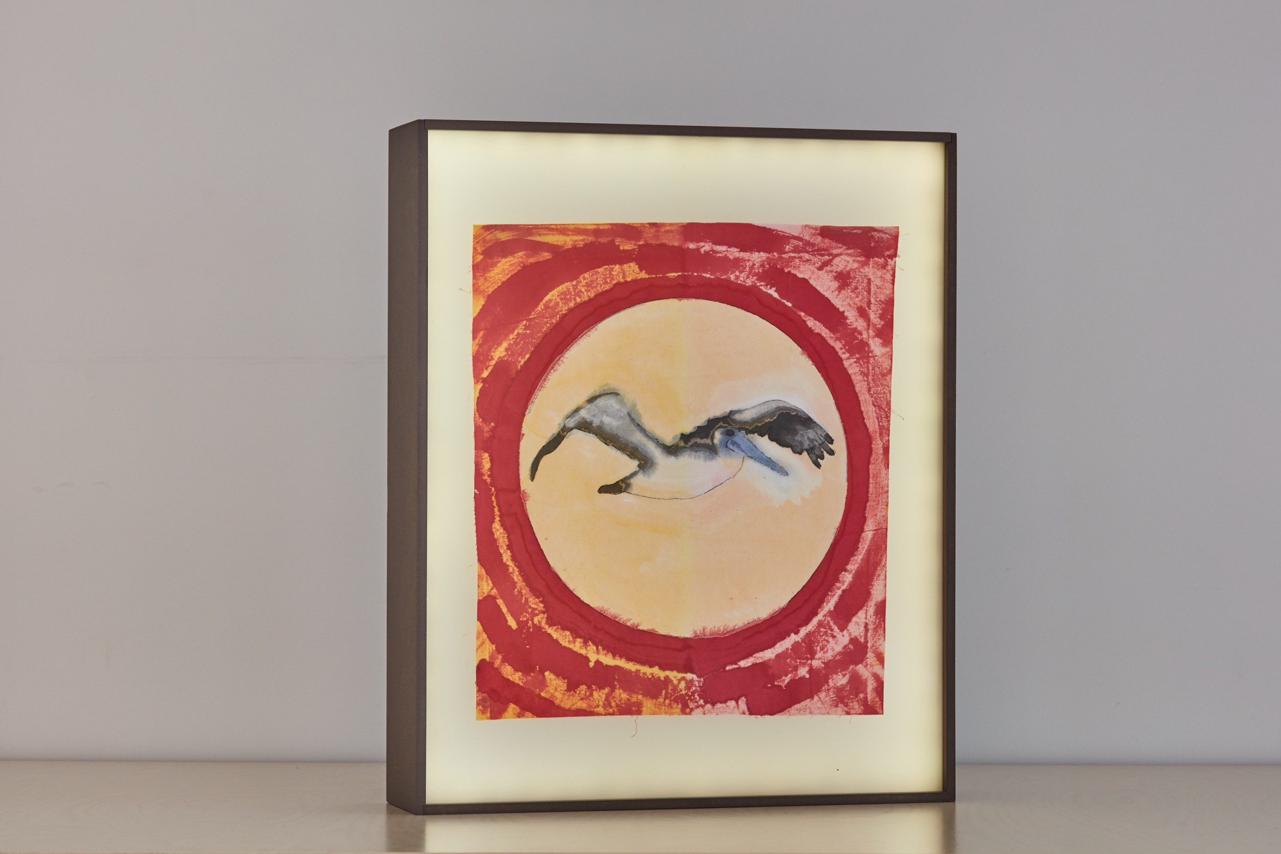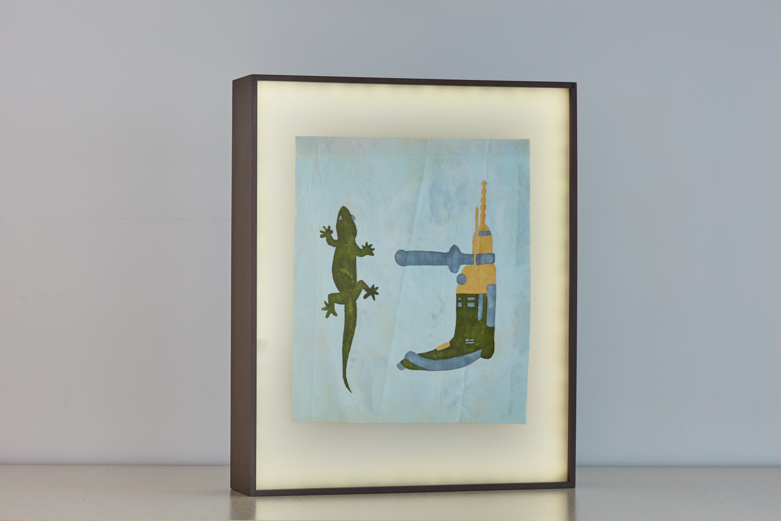 china ink on cotton, 34x40cm, in backlit boxes, 12x46x57cm, battery-powered