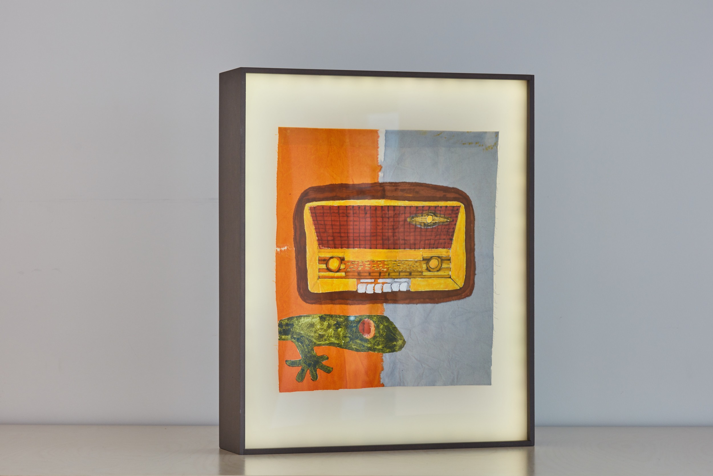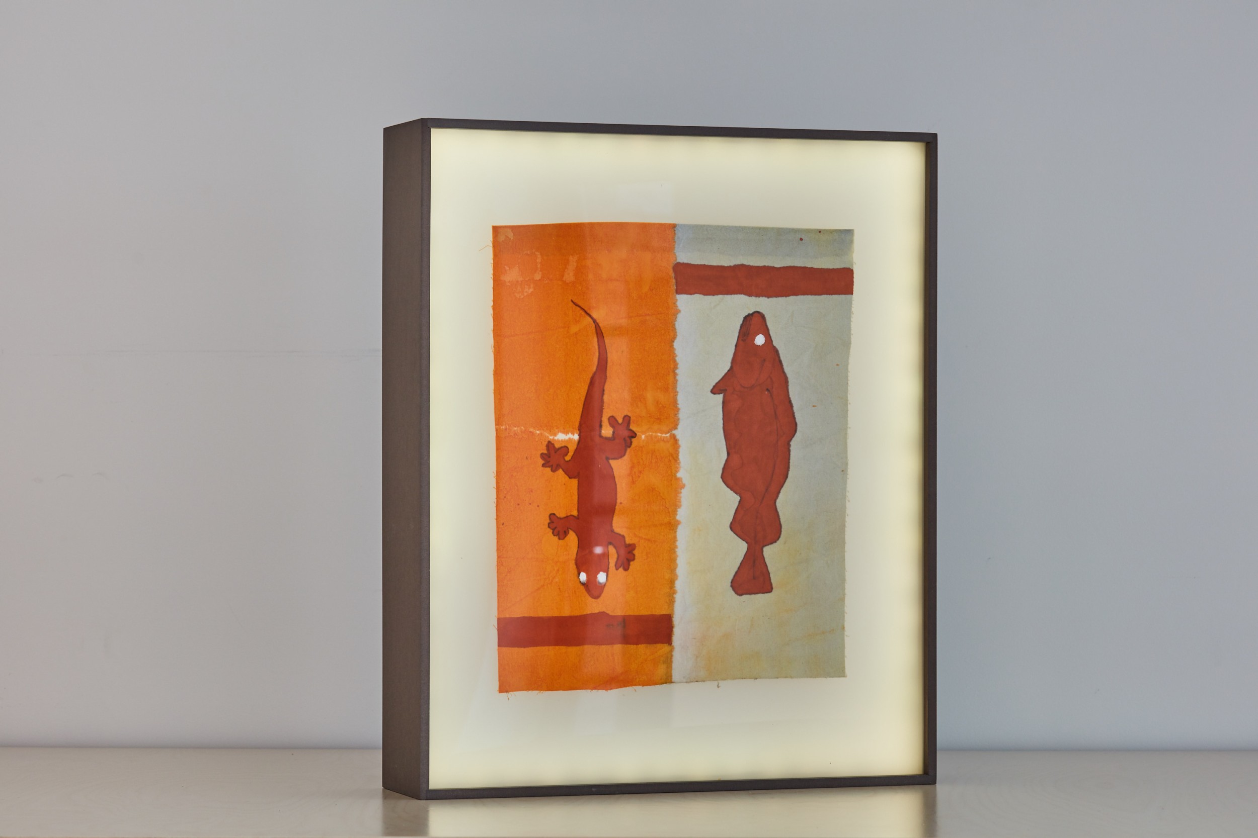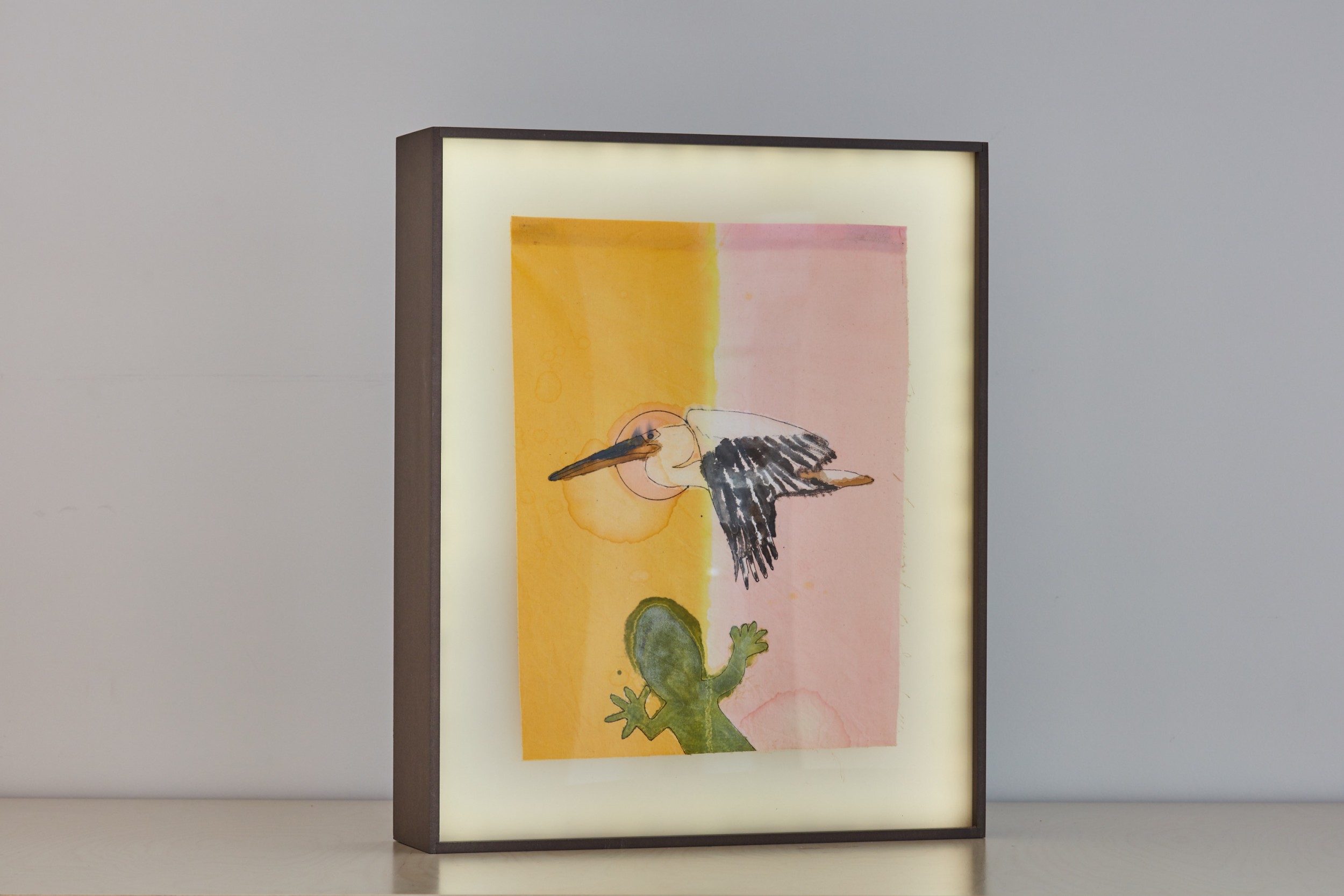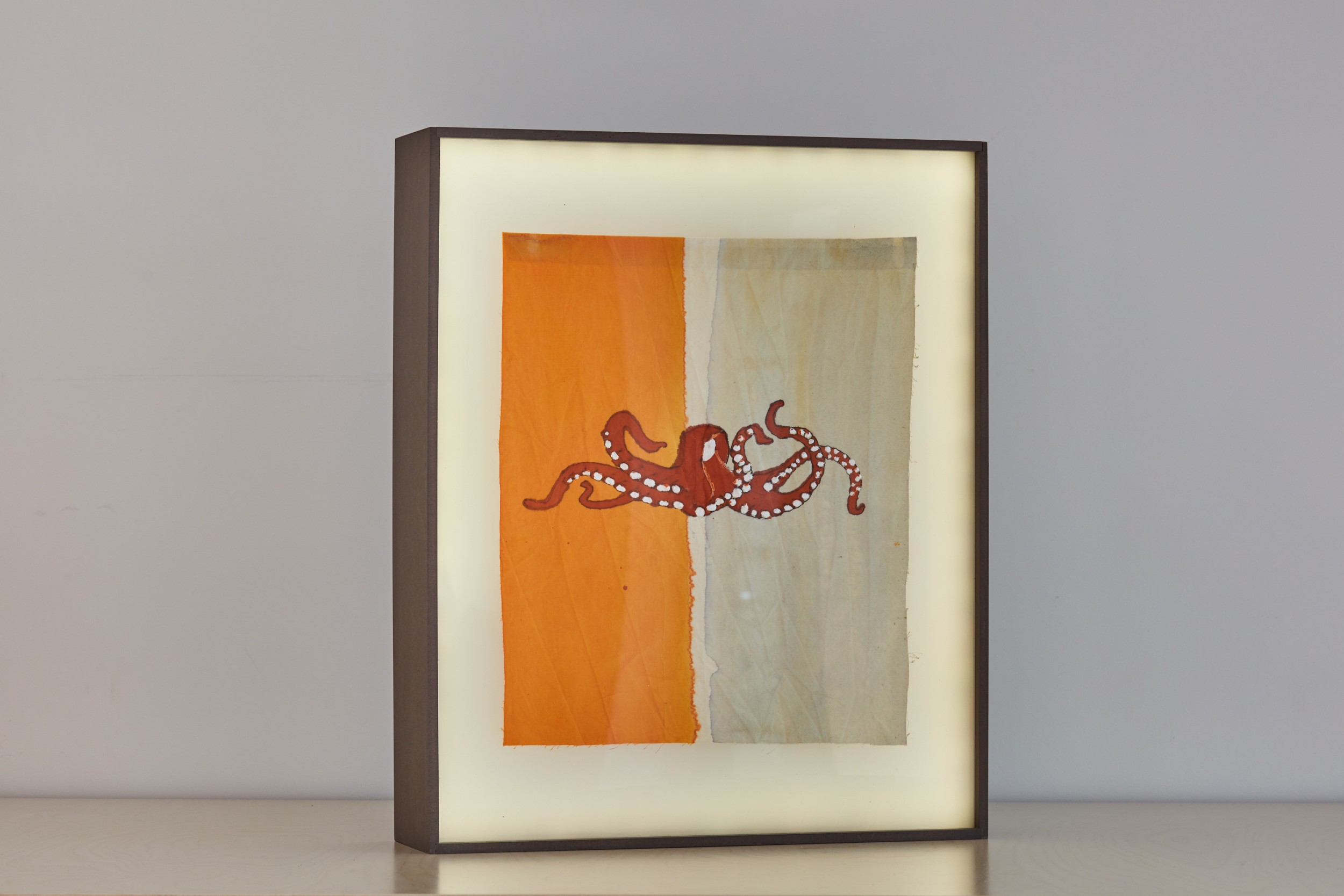 china ink on cotton, 34x40cm, in backlit boxes, 12x46x57cm, battery-powered