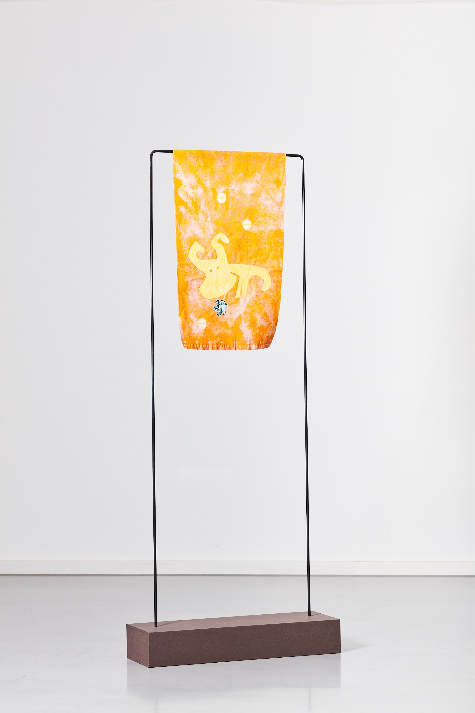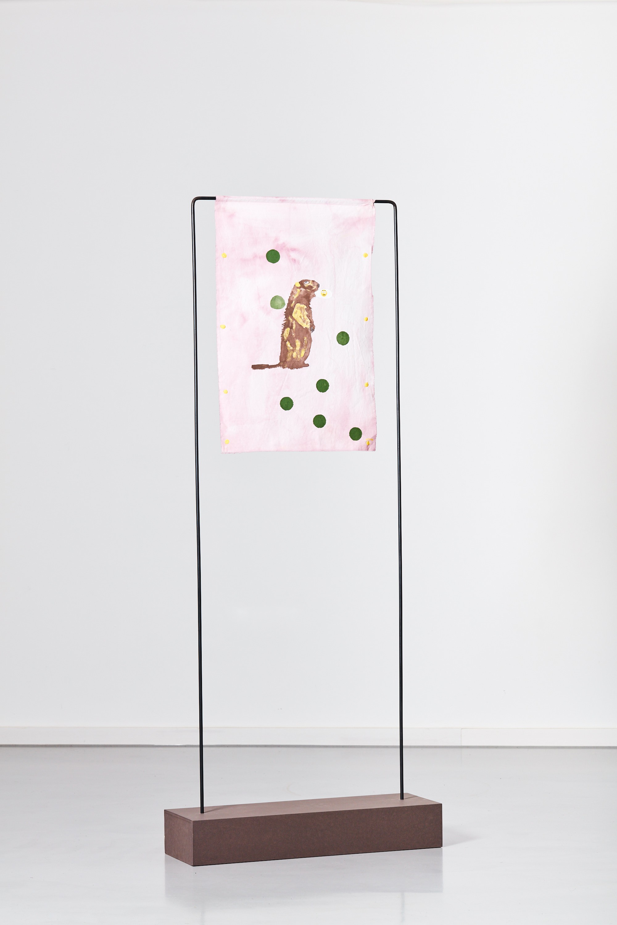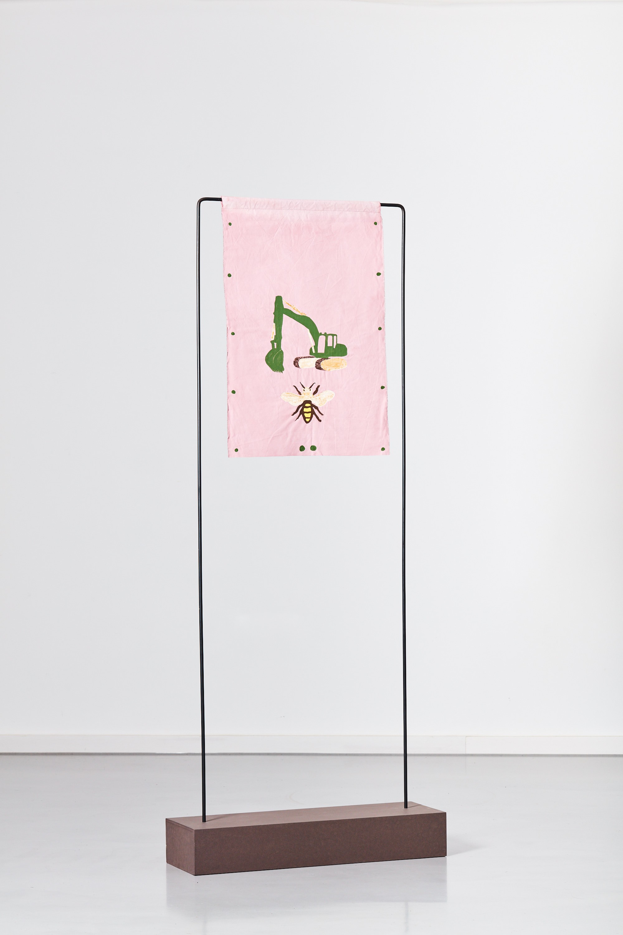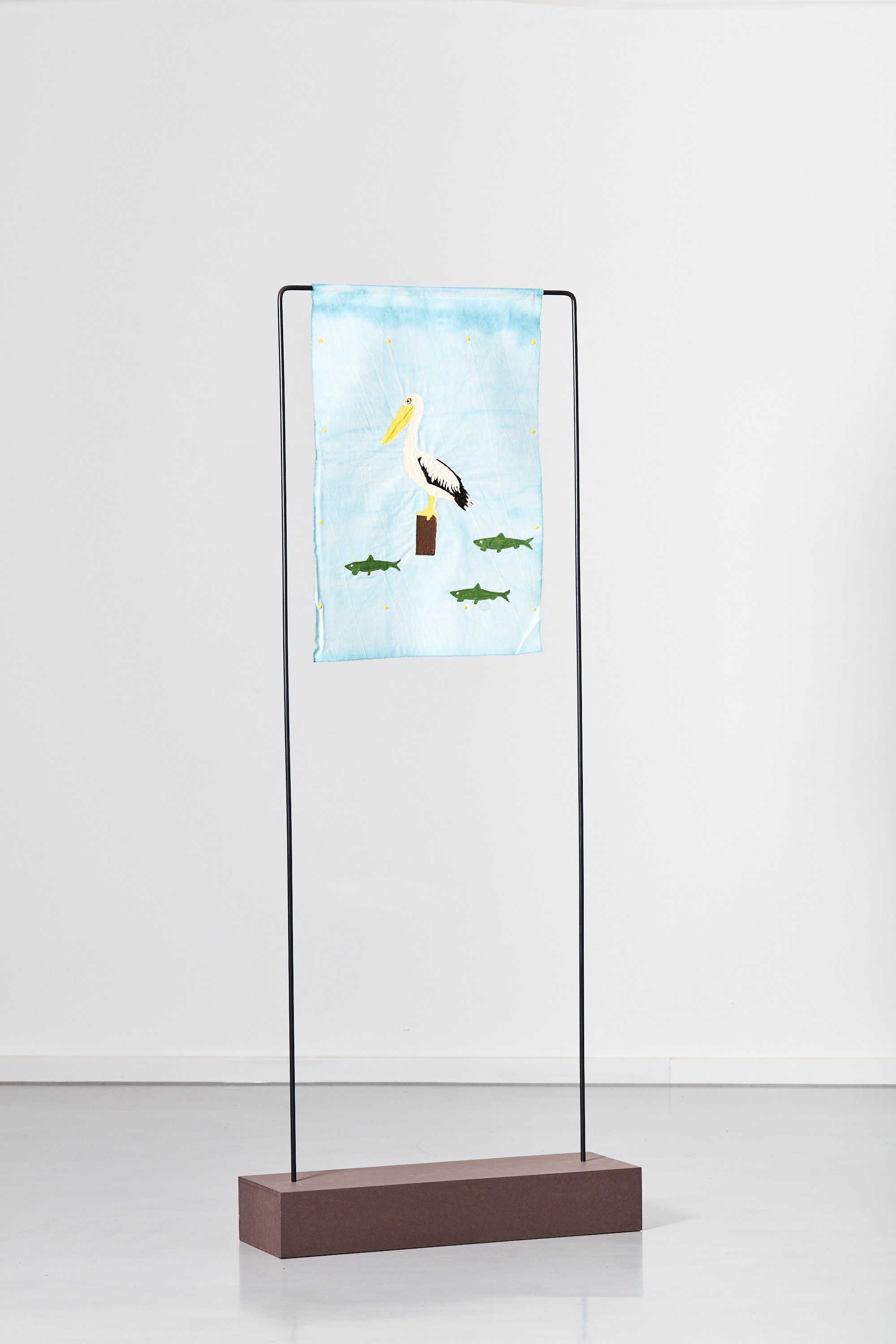 china ink on cotton, flag: 41x62cm, flag stand: 11x21x65cm, 54x160cm